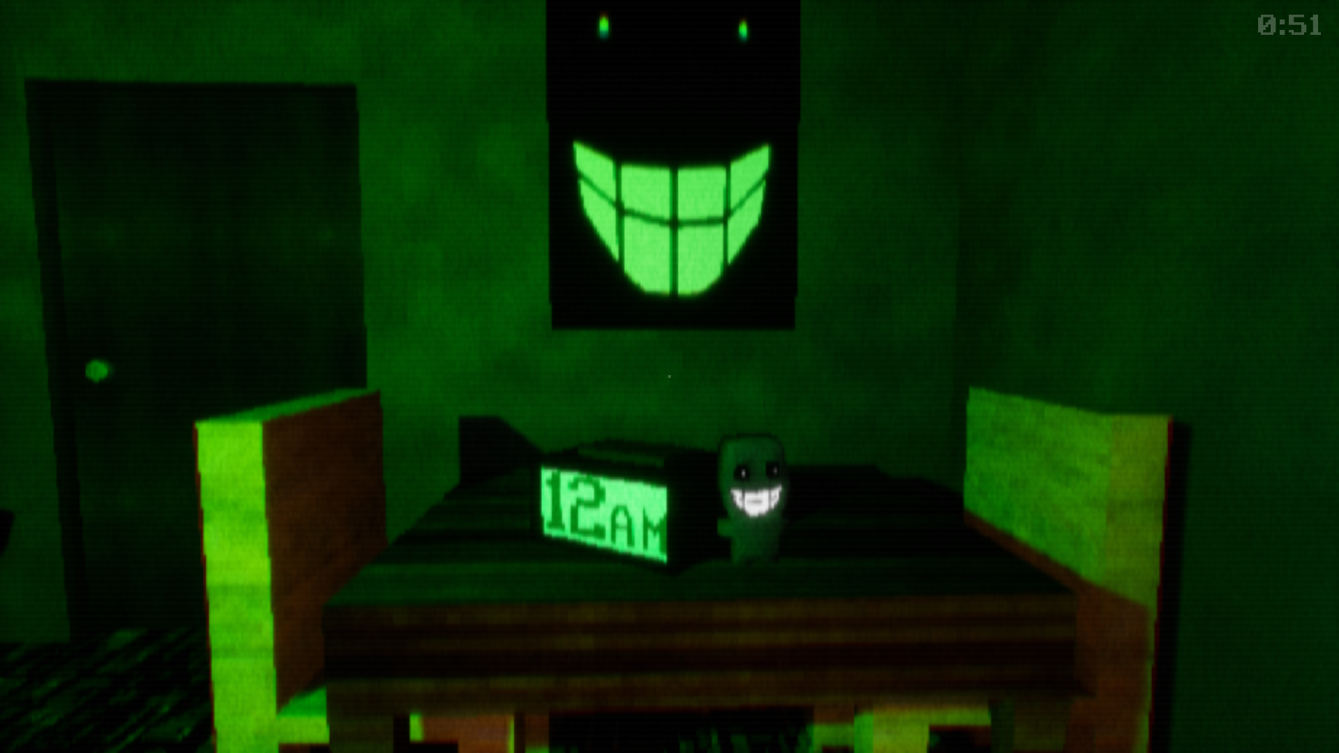 I might mess with his sight range a little in the update. As far as SUNKY goes, I don't plan on extending the range on her audio. The player is given a chunky 60 seconds the first time they are caught, and that time lessens with each capture. The point is to not get caught at all. The hide-and-seek mechanic in general was more of a courtesy to the player to keep the base game easy and the harder difficulties more streamlined in regards to their pacing.